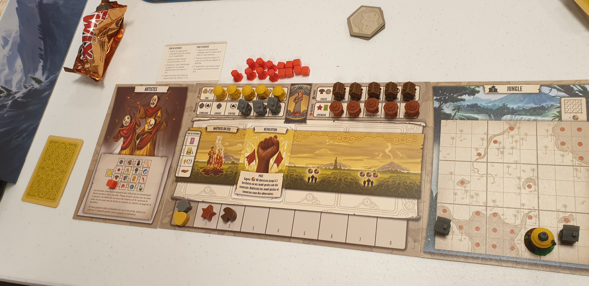 En ce vendredi pluvieux, nous étions quelques uns à trouver refuge dans la grande salle de l'Ouvre Boites, chauffée pour l'occasion par les danceurs sur la piste de la salle des Granges au rez de chaussée. Nous avons bâti des civilisations (Tapestry, Matagot), peint des tableaux (Couleurs de Paris, SuperMeeple), élucidé des meurtres (CS Files, Iello), neutralisé des bombes (TimeBomb, Iello), et bien d'autres encore !